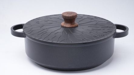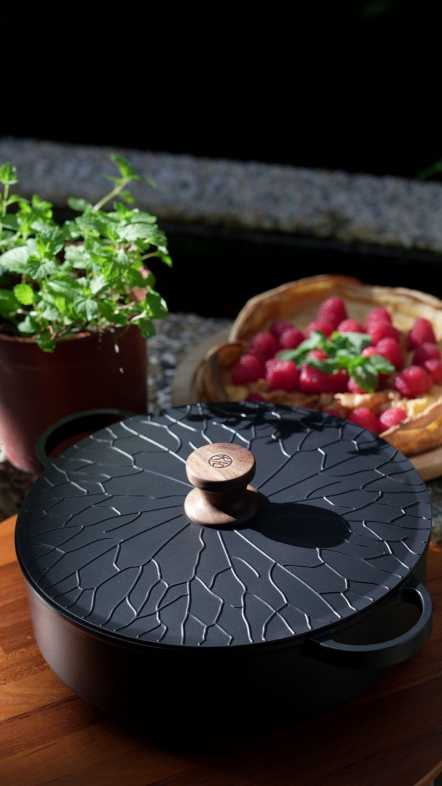 整體鍋具採用「陶瓷模脫蠟」精密鑄造技術,結合奈米等級的陶瓷 鍍膜,帶來更細緻的手感與更輕盈的鍋體重量,
