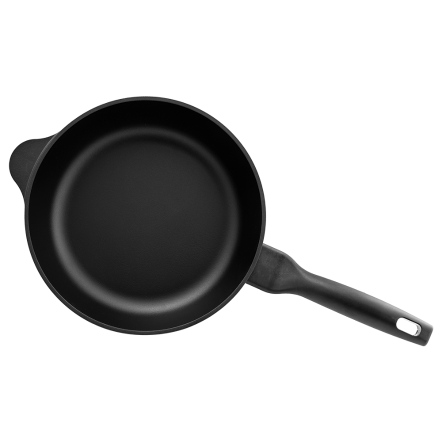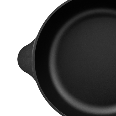 捨棄傳統砂模鑄造,改用「陶瓷脫蠟鑄造」,鑄造出來的鐵器毛孔較傳統鐵器小、表面光滑;結構緻密堅固,烹煮後可冷水刷洗,不因溫差產生破損。碳化油膜開鍋層與純粹的生鐵,天然不怕刮。安心使用鐵鏟料理,不怕刮傷鐵鍋。
