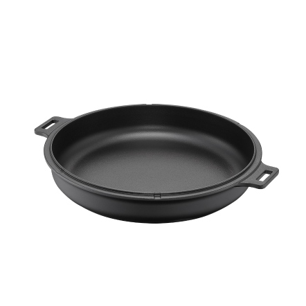 捨棄傳統砂模鑄造,改用「陶瓷脫蠟鑄造」,鑄造出來的鐵器毛孔較傳統鐵器小、表面光滑;結構緻密堅固,烹煮後可冷水刷洗,不因溫差產生破損。碳化油膜開鍋層與純粹的生鐵,天然不怕刮。安心使用鐵鏟料理,不怕刮傷鐵鍋。