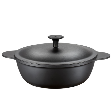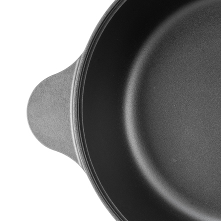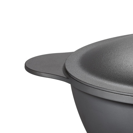 捨棄傳統砂模鑄造,改用「陶瓷脫蠟鑄造」,鑄造出來的鐵器毛孔較傳統鐵器小、表面光滑;結構緻密堅固,烹煮後可冷水刷洗,不因溫差產生破損。碳化油膜開鍋層與純粹的生鐵,天然不怕刮。安心使用鐵鏟料理,不怕刮傷鐵鍋。