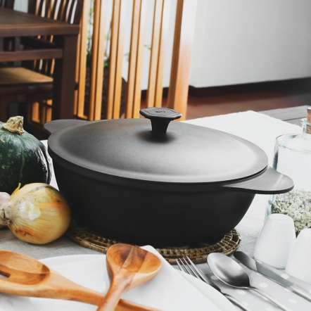 為了讓使用者能完全放心,大古鑄鐵鍋的鍋內是使用食用等級的亞麻仁油開鍋,鍋外是採用天然生漆塗裝,避免烹煮食物用的工具接觸到化學塗層、重金屬汙染的風險。
