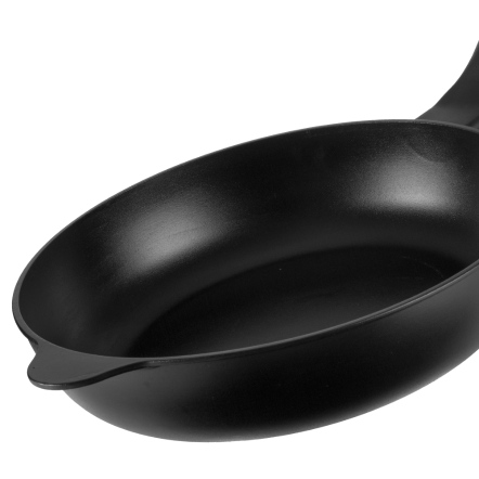 捨棄傳統砂模鑄造,改用「陶瓷脫蠟鑄造」,鑄造出來的鐵器毛孔較傳統鐵器小、表面光滑;結構緻密堅固,烹煮後可冷水刷洗,不因溫差產生破損。碳化油膜開鍋層與純粹的生鐵,天然不怕刮。安心使用鐵鏟料理,不怕刮傷鐵鍋。