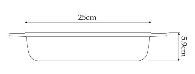 | 尺寸 | 鍋緣直徑25cm;鍋底直徑21cm;鍋高5.9cm;鍋耳10cm x 3cm;總長33cm |