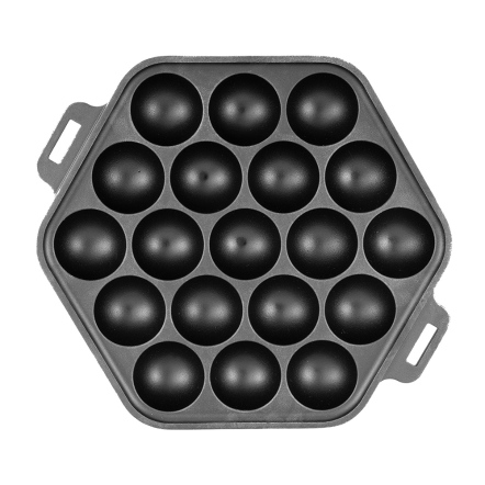 | 尺寸 | 鍋緣直徑23cm;章魚燒槽直徑4cm;鍋高3cm;鍋耳5cm x 2cm;總長25cm |