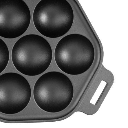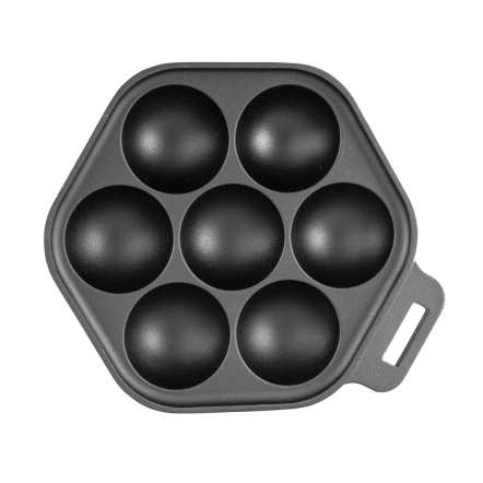 | 尺寸 | 鍋緣直徑15cm;章魚燒槽直徑4cm;鍋高2.5cm;鍋耳5cm x 2cm;總長15cm |