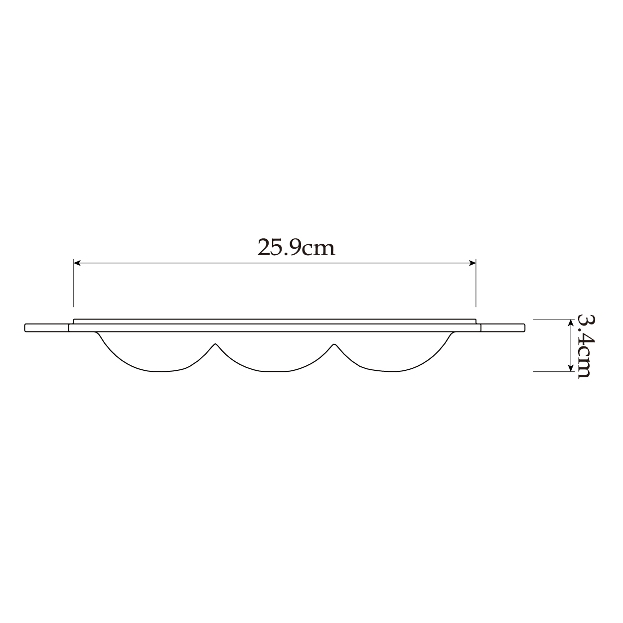 | 尺寸 | 鍋緣直徑26cm;柳橙模直徑8cm;鍋高3.3cm;鍋耳5cm x 2.5cm;總長32cm |